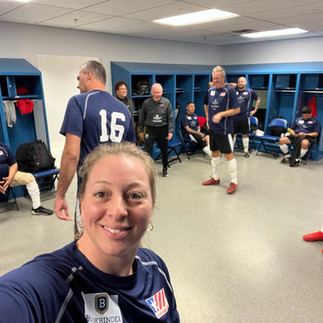 My teammates who I have played with over the years are just great! From the moment we see each other entering the stadium, it's all hugs and a huge smiles excited to see each other again. For the new players who join us, you hear them asking and wondering what kind of player I am... almost as if am I good and tough enough to play with men. I hear men from both teams talking to new players, telling them to watch out for Michelle! She will play tough, she's fast, and she will go for every ball without even thinking twice about it. It truly feels amazing to be 43 years old and be playing with men of all different ages and have them cheer me on and tell me how great I did! And to be able to keep up with them too!
